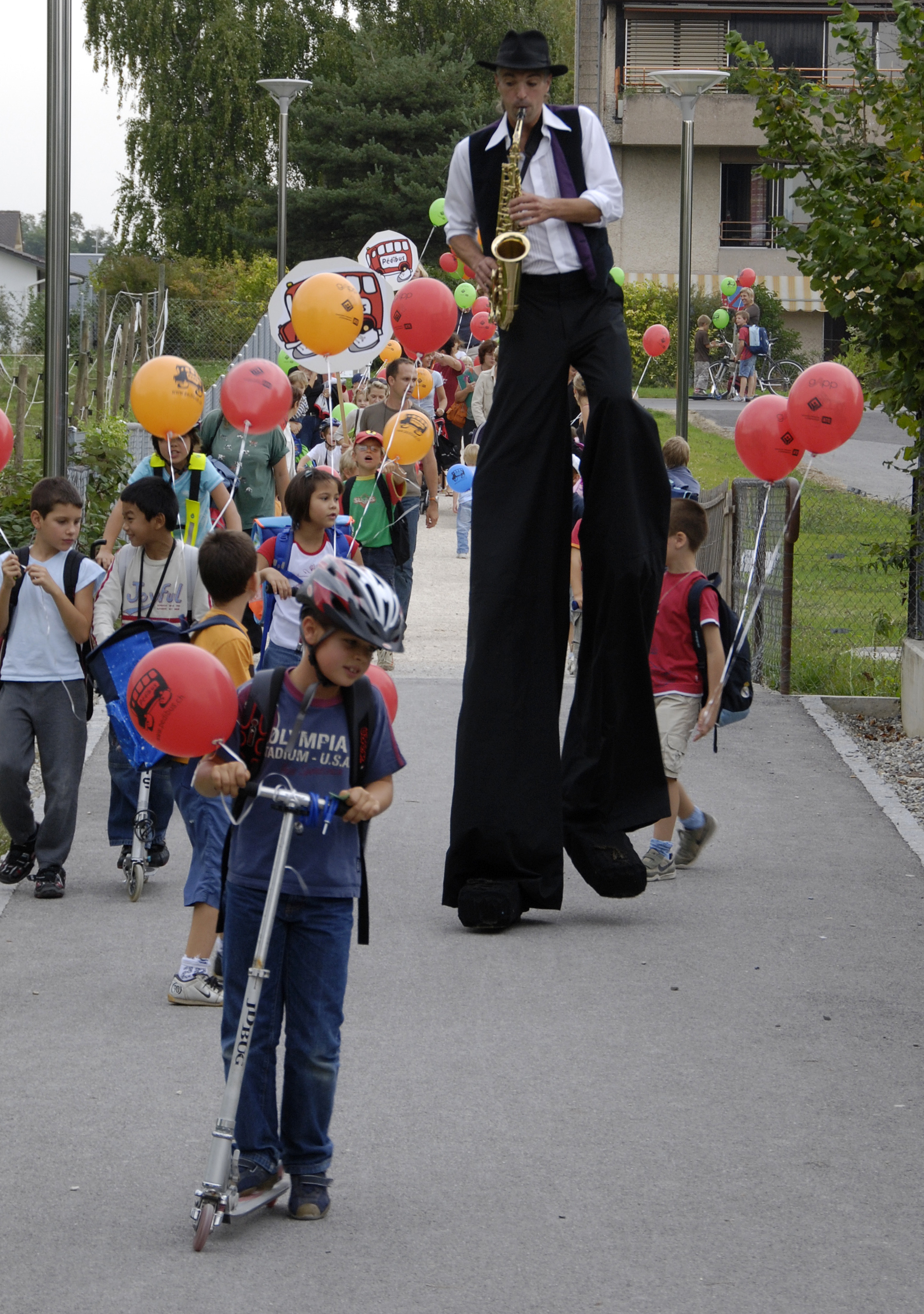 Le Pédibus est un système d’accompagnement des enfants à pied à l’école, sous la conduite des parents. L’itinéraire de la ligne de Pédibus, ses arrêts et ses horaires sont programmés par les parents. Chaque parent qui inscrit son enfant dans le Pédibus s’inscrit également pour le « conduire », une à deux fois par semaine selon les besoins. L’enfant rejoint alors le Pédibus à un arrêt et fait le trajet vers l’école avec ses camarades, sous la conduite d’un adulte. Après l’école, le Pédibus ramène l’enfant à l’arrêt le plus proche de chez lui, où l’attend son parent. En 2015, 250 lignes de Pédibus sont recensées dans toute la Suisse romande. En même temps qu’il rend service aux familles et soulage leur organisation, le Pédibus est un outil très efficace pour sensibiliser à la mobilité douce, habituer les enfants à se déplacer à pied et améliorer l’apprentissage et l’autonomie des enfants piétons. Une récente étude montre que le Pédibus bénéficie d’une forte notoriété (96%) et d’un très haut taux de satisfaction (96%) notamment en raison de ses bienfaits pour la sécurité, la santé, l’environnement et les liens sociaux. La connaissance du Pédibus a incité la moitié des familles interrogées (46%) à modifier leurs comportements de mobilité. Selon les parents interrogés, les enfants apprennent à se comporter de manière adéquate dans la circulation. 70 % d’entre eux estiment que le Pédibus augmente la sécurité sur le chemin de l’école. Le Pédibus représente donc une véritable alternative pour contrer la diminution de la mobilité active.