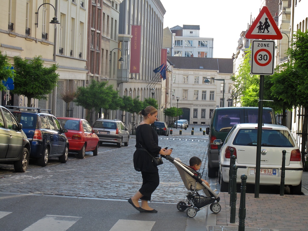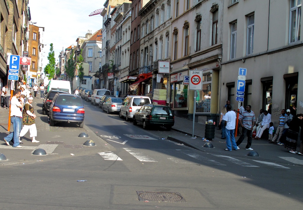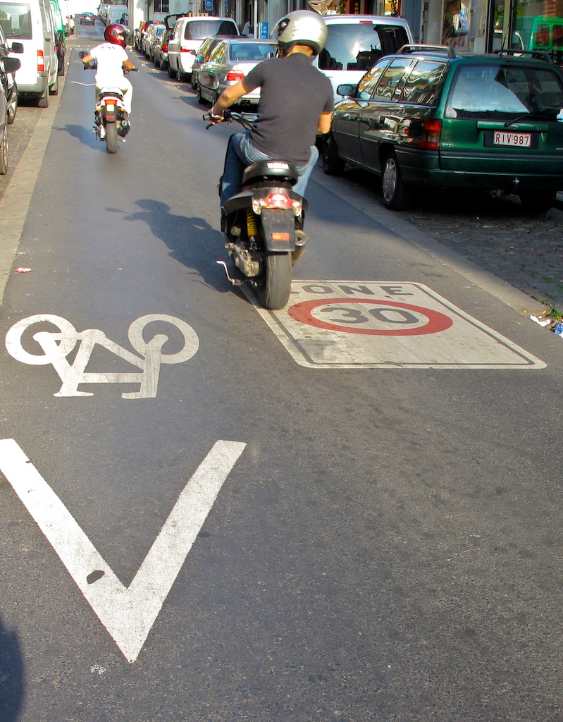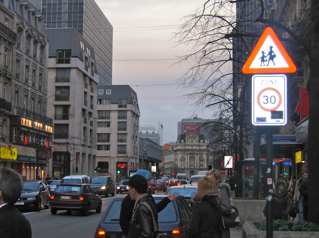 - « Zones 30 à Bruxelles », on notera les marquages au sol.