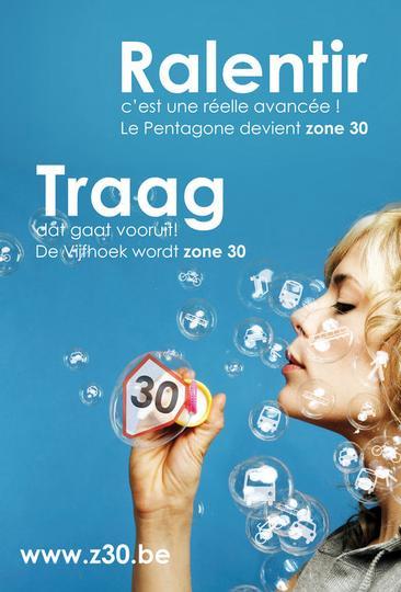 - « Mobilité douce à Bruxelles » principalement à l’intérieur du Pentagone à 30 km/h