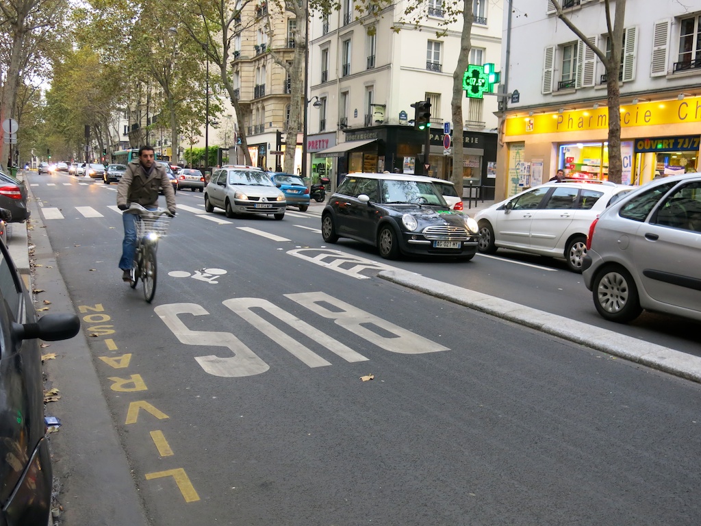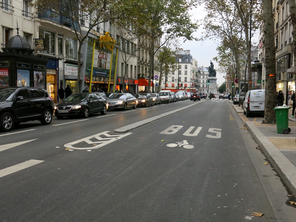 - Création d’un couloir de bus protégé par un séparateur et ouvert aux cyclistes dans le sens pour permettre aux bus des lignes 54, 74 et 81 de mieux circuler