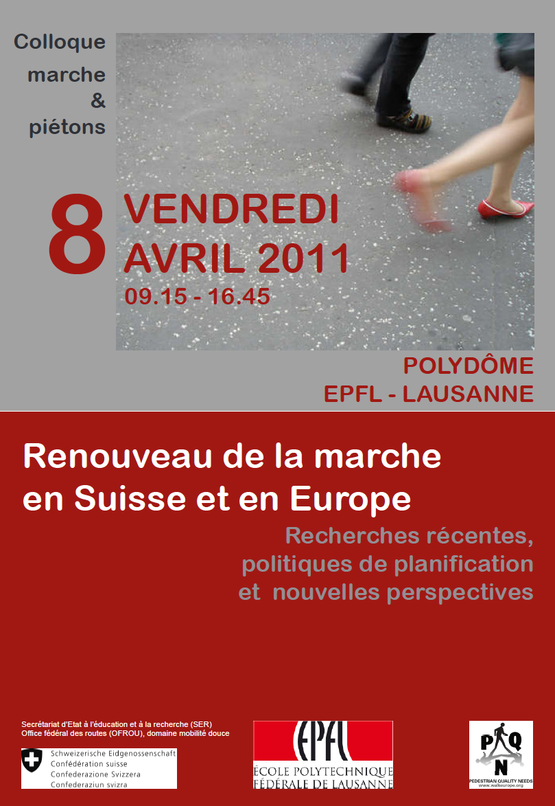 Ce colloque, marquant la fin de l’Action COST358 « Pedestrian Quality Needs » – (résumé de 4 page en français) a permis de faire le point sur les enjeux et le futur de la marche au travers notamment des résultats de ce projet européen, qui a réuni près de 70 chercheurs issus d’une vingtaine de pays.