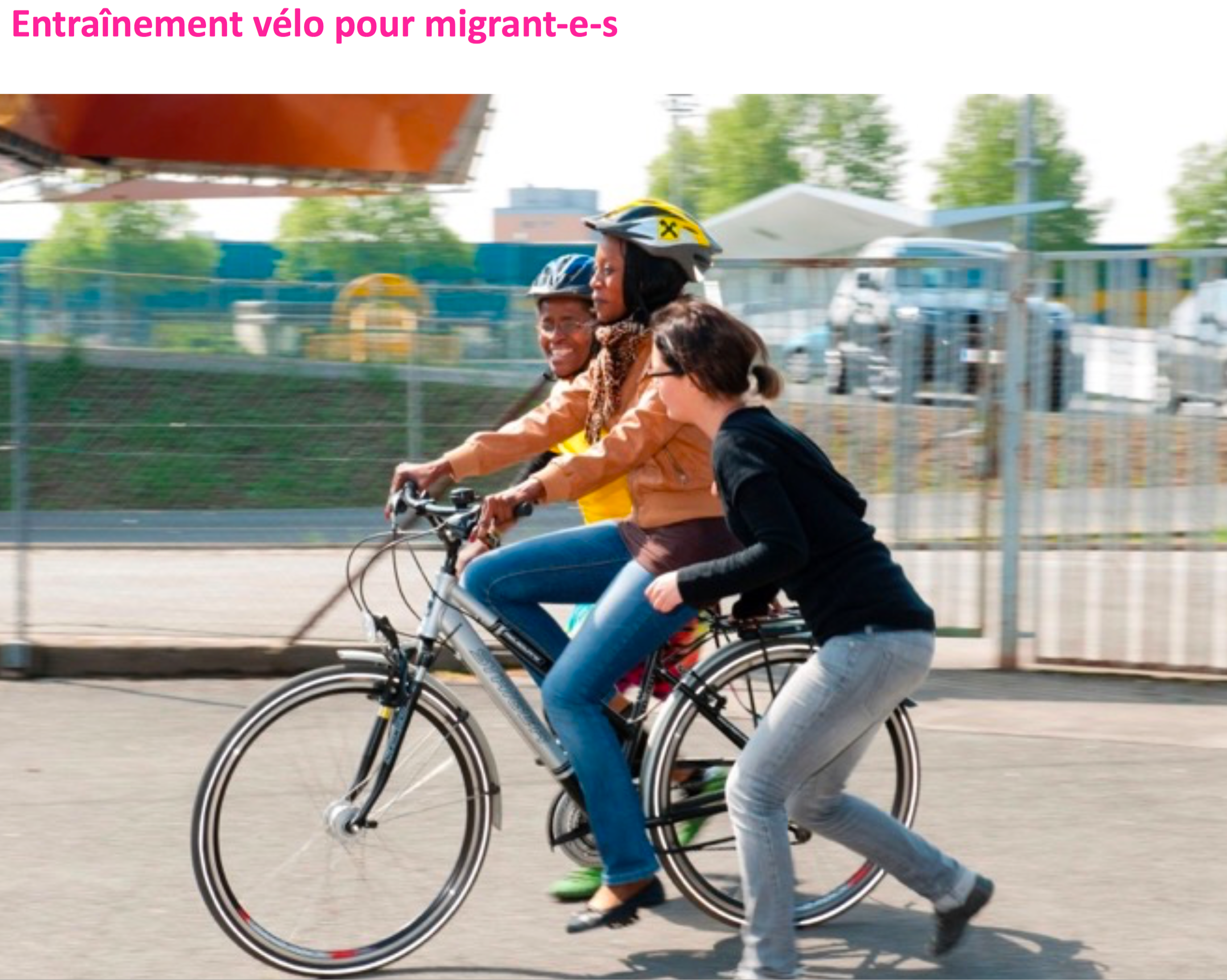 - des actions ciblées envers des groupes particuliers d’usagers. Par ex entrainement vélo pour les migrants (photo 14), pour les seniors