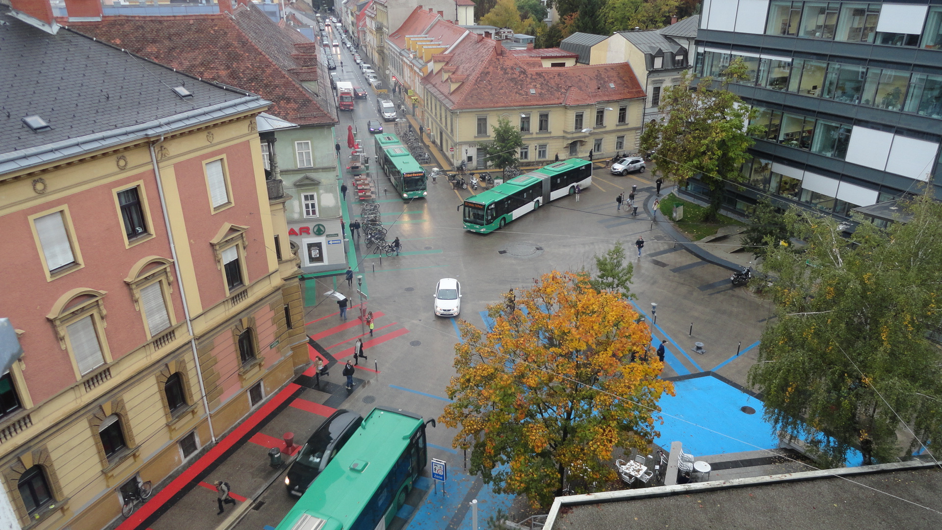 L’Autriche a introduit la «zone de rencontre» (Begegnungszone) le 31 mars 2013 Lien vers Chambre de commerce autrichienne (en allemand). L’une des premières mesures a été de « légaliser » les espaces partagés (shared space en jargon) existants en Autriche. Ce qu’a fait la ville de Graz à la Sonnenfelsplatz en « légalisant en 2013 son « espace partagé » de la place Sonnenfels créé en 2011.